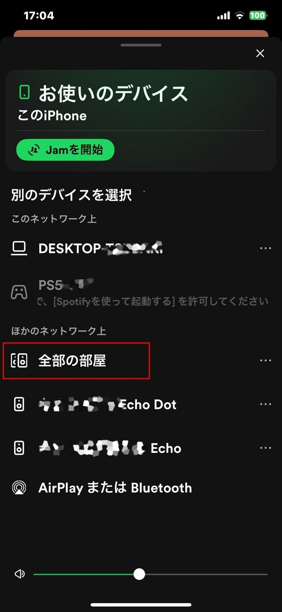 Spotifyの画面から、音声を出力するデバイスを簡単に選べて